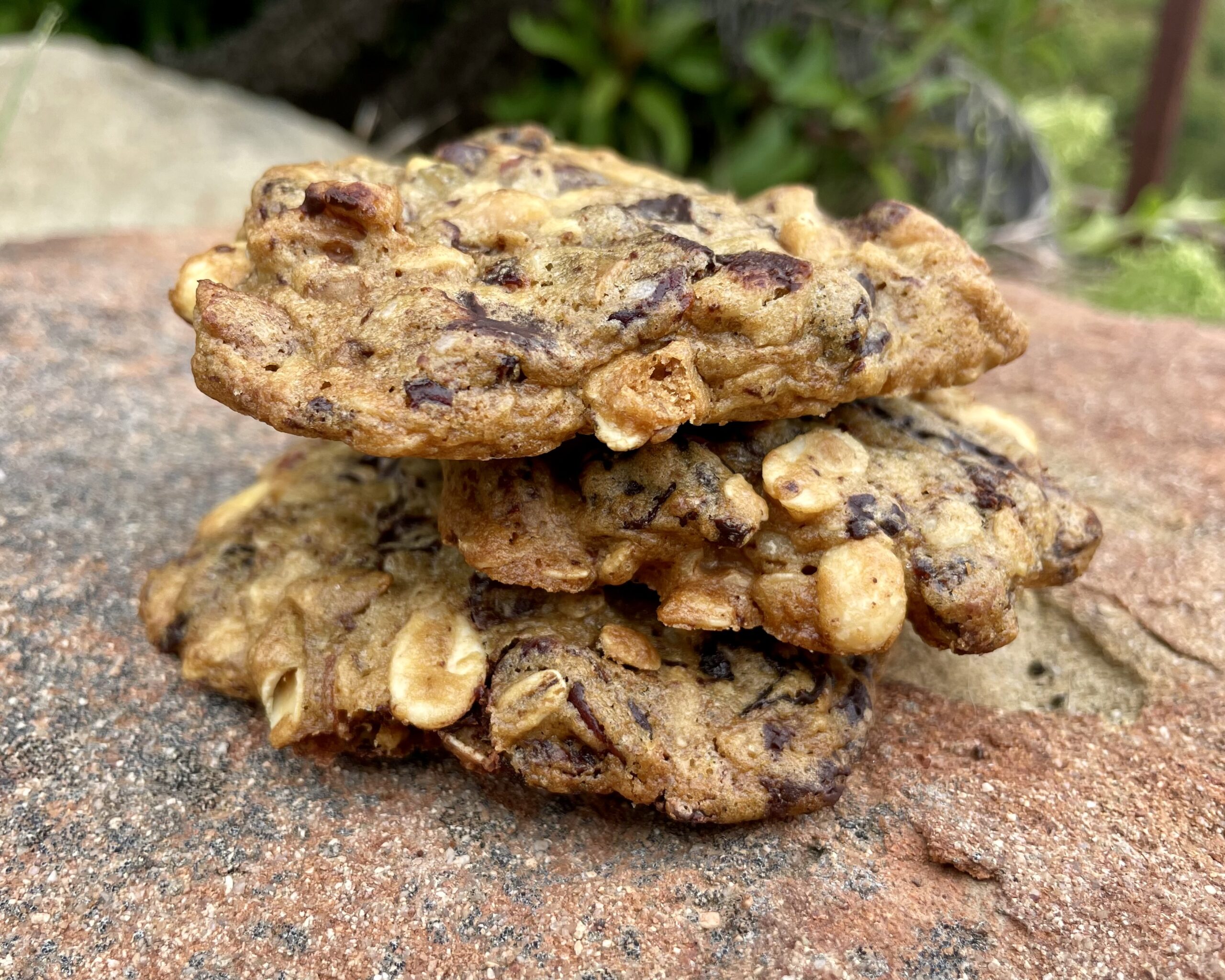 - Bake the cookies until your kitchen is filled with the enticing aroma of the freshly baked goodies, and the cookies are golden brown and no longer wet looking, reversing the sheets about half way through, for about 14 minutes. Let the cookies cool on the baking sheets. (If you can't resist tasting one fresh from the oven, and aren't opposed to getting a little melted chocolate on your fingers, I suggest enjoying a cookie as soon as they are cool enough to handle.) Store airtight at room temperature for up to a week, or freeze for up to 3 months. Take these gems on all your adventures for a yummy energy boost or snack.