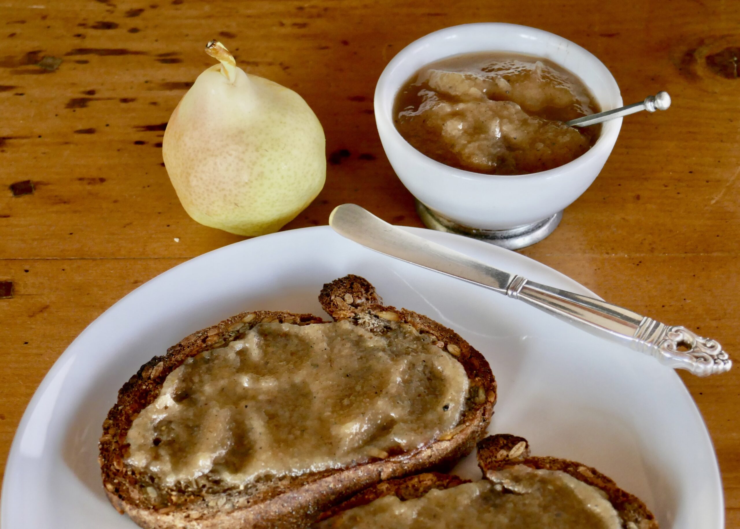 The sweet scent of simmering fruit mixed with cardamom and vanilla was as hard to ignore as the view out our windows of Aspens in their full colorful dress. The days felt like a celebration of life in the mountains, and I didn’t want to be anywhere else. I couldn’t resist sampling the delicately spiced condiment over and over, and each taste triggered another idea for how to enjoy it, ideas I’d just have to test—slathered on toast, spooned over Greek yogurt, atop French toast, on a cheese board to accompany soft goat cheese or rich, aged Manchego. I’d been looking forward to tucking a few jars of the preserve in the cupboard to enjoy all winter, but there’s a good chance the pear butter will get gobbled up long before the really cold weather sets in. I’ll just have to make another batch for that.